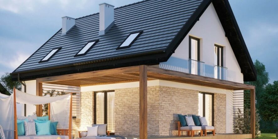 Dom zaprojektowano w taki sposób, aby zapewnić jego przyszłym mieszkańcom maksymalne poczucie komfortu i bezpieczeństwa. Na parterze przygotowano przestrzeń na przestronny salon z kominkiem lub salon z gabinetem, kuchnię, łazienkę oraz dwustanowiskowy garaż z odrębnym wejściem do domu. Na piętrze usytuowano 3 przestronne sypialnie. Do głównej sypialni przynależy prywatna łazienka, garderoba, a także taras. Dodatkową przestrzeń można wygospodarować z użytkowego poddasza o powierzchni ok. 30 m2.