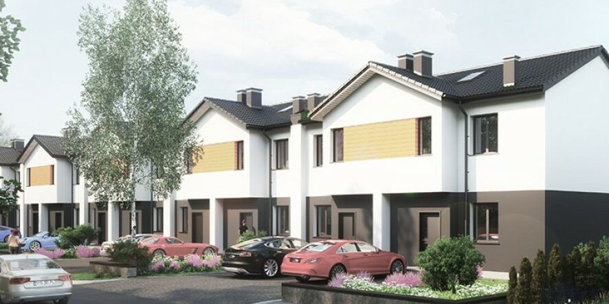 Osiedle domów w zabudowie szeregowej w Książenicach blisko Grodziska Mazowieckiego.